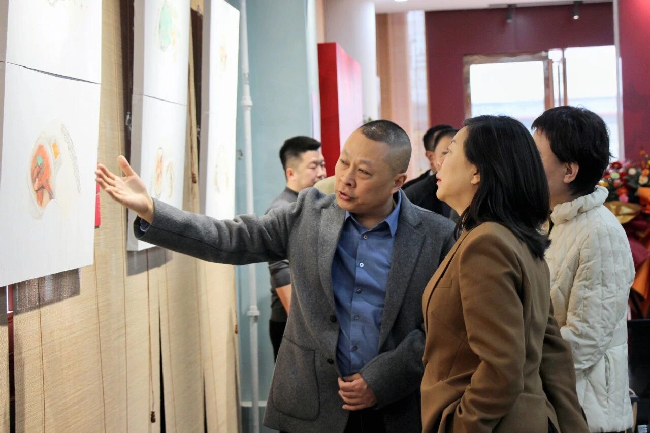 漫步展厅,6位画家以多元视角诠释中原文化的匠心之作,吸引了不少美术工作者与爱好者驻足流连。他们或凝神细观、拍照学习,或三三两两交流切磋。展览现场,贾发军将中原美食跃然纸上,市井烟火中尽显生活真淳,笔墨轻松而意趣盎然;杜亚民用油画捕捉中原光影,色彩沉稳间流淌诗意,现实与抒情交织。付万全的写意花鸟突破传统,笔墨形态充满当代张力;张海江则扎根文脉,花鸟间透出温润古意。齐柠以版画重构视觉经验,黑白版痕中蕴含叙事深度;高忠亮则以文人高士及钟馗形象寄寓当代精神,笔墨豪放中见人格力量。