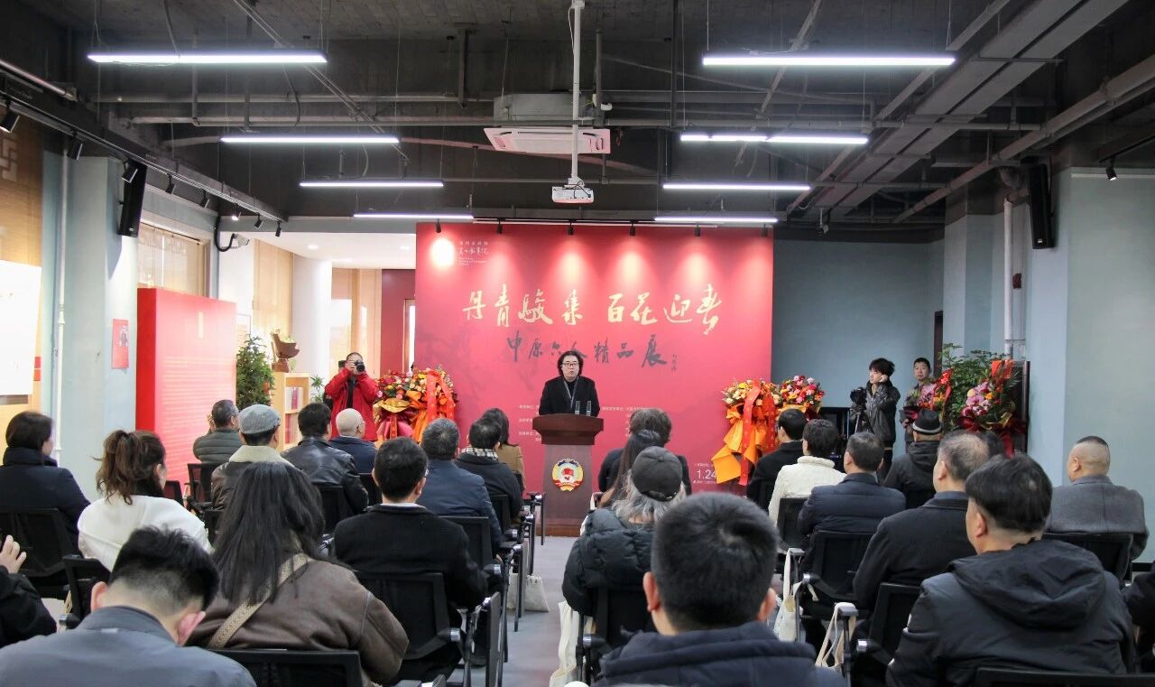 2月2日下午,“丹青骏集 百花迎春——中原六人精品展”在郑州市政协嵩山书画院展厅开幕。