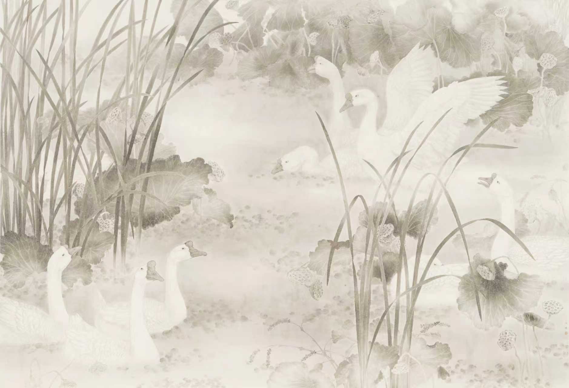 △工笔花鸟画《荷塘清趣》