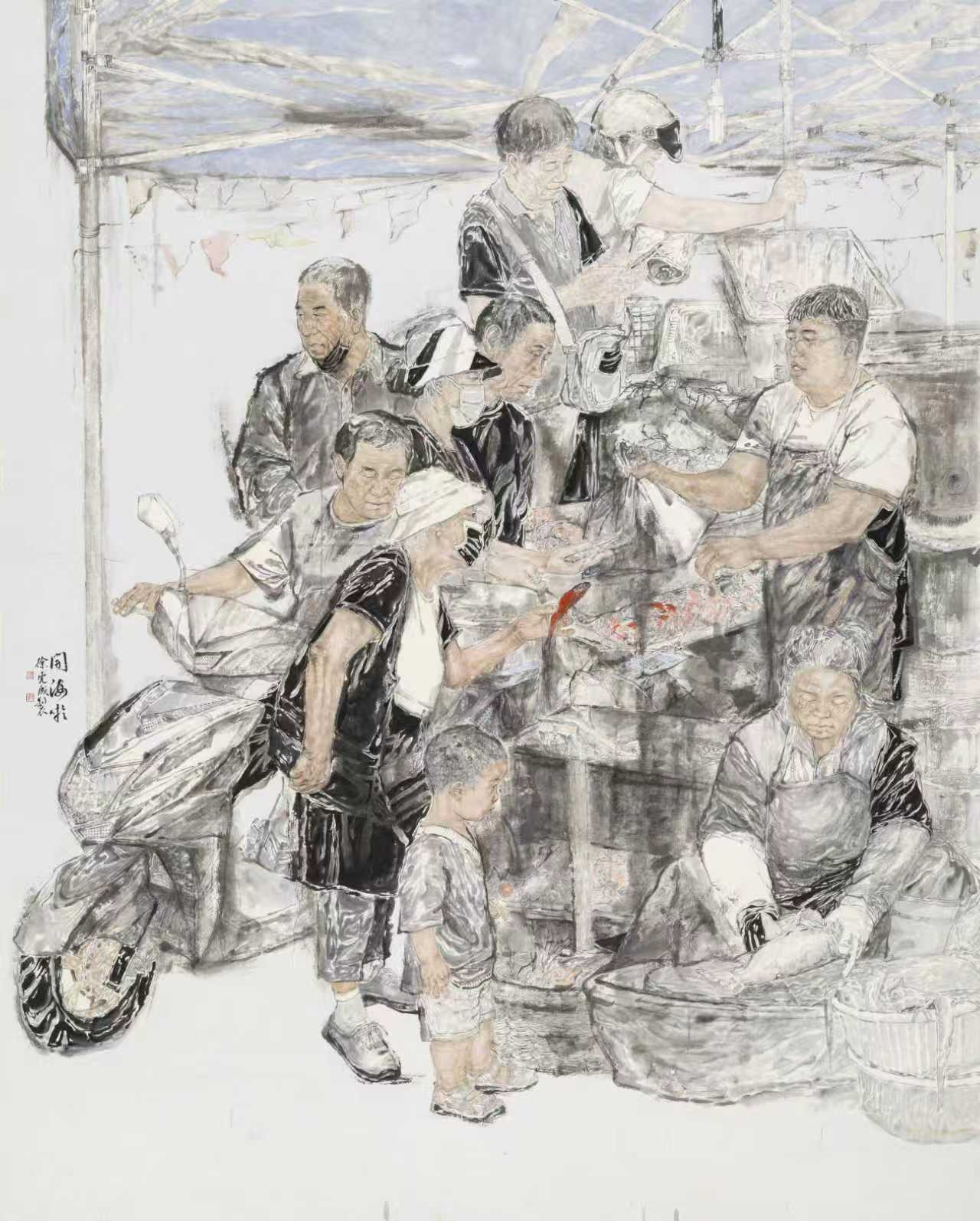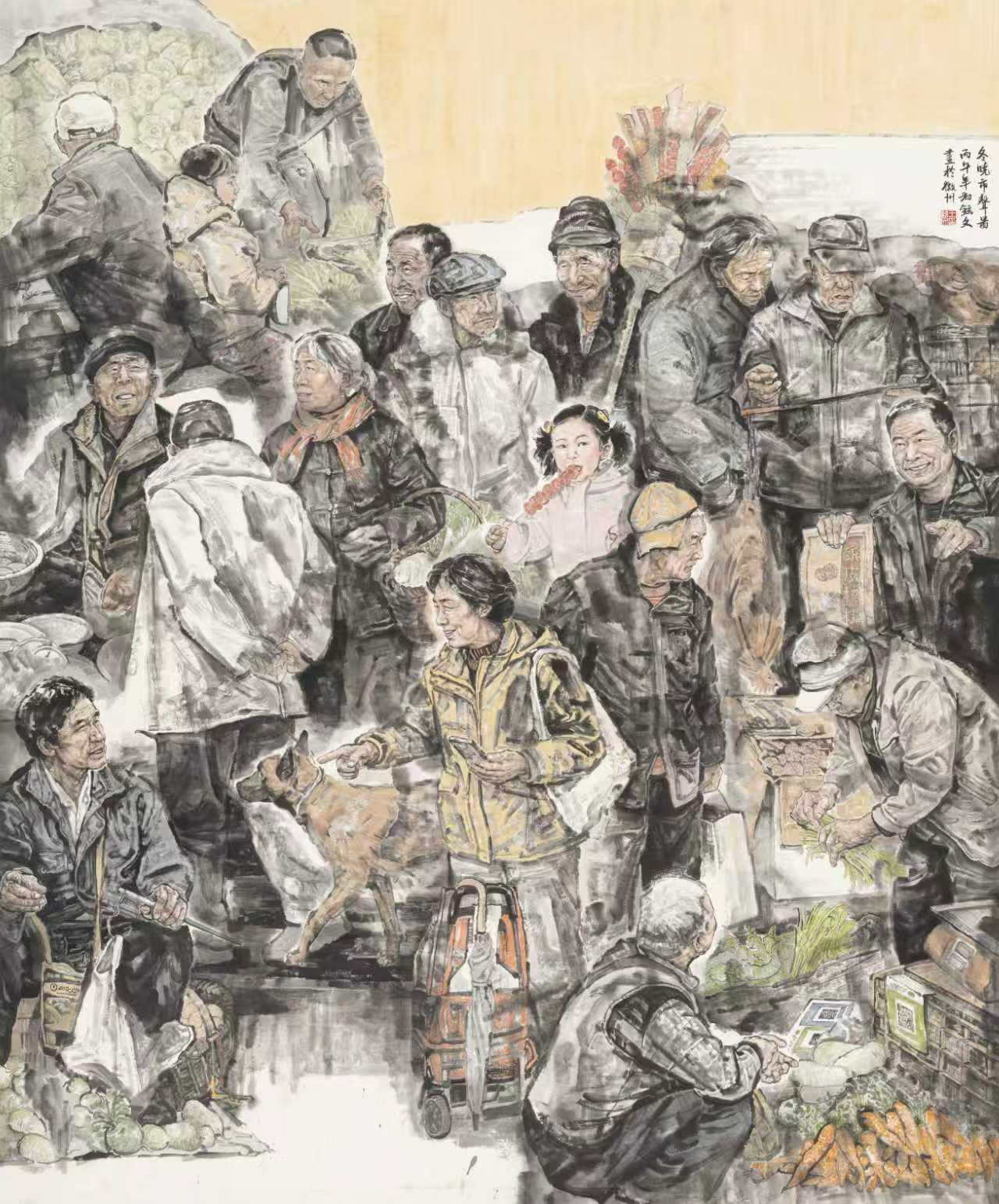 △写意人物画《冬晓市声图》