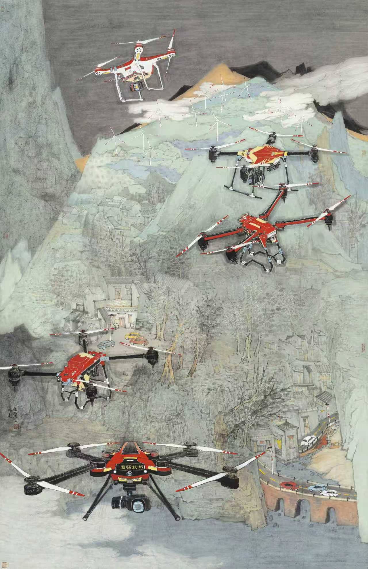 △写意山水画《科技筑梦》