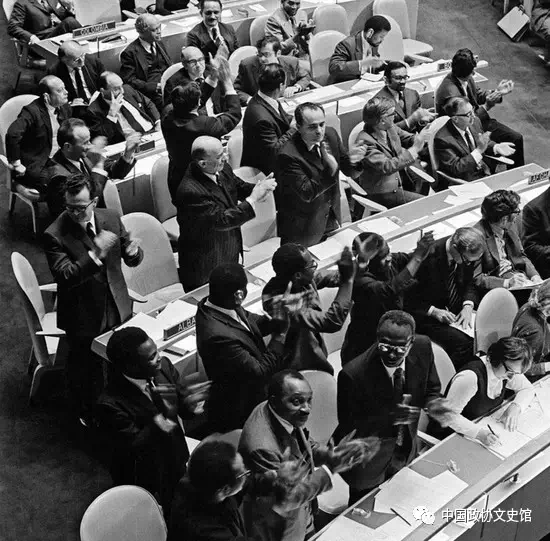 ▲1971年10月25日,第26届联合国大会表决结果发布后,现场一片沸腾。