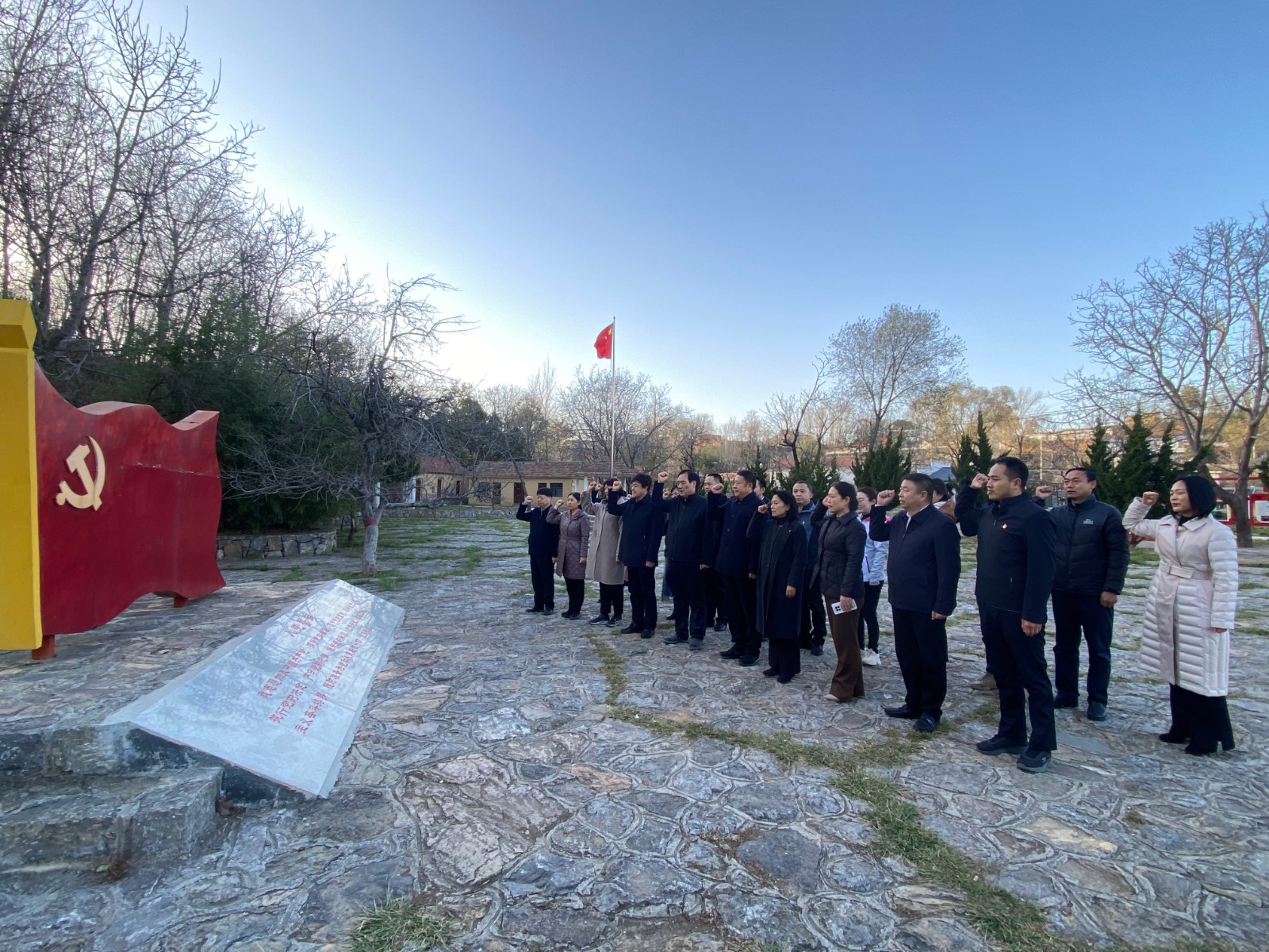 在中原豫西抗日纪念园,大家随着讲解员的解说,认真参观了皮定均将军工作旧址、密北抗日民主政府旧址、八路军豫西抗日先遣队司令部旧址等。一幅幅黑白照片,一件件珍贵实物,把大家带回那段惊心动魄、激荡人心的峥嵘岁月。大家仔细阅读每一块展板,认真听取每一部分讲解,感受革命先烈们的精神与爱国情怀。参观结束后,在中原豫西抗日纪念园广场,全体党员以饱满的精神状态重温入党誓词,面向党旗再一次对党作出庄严承诺。