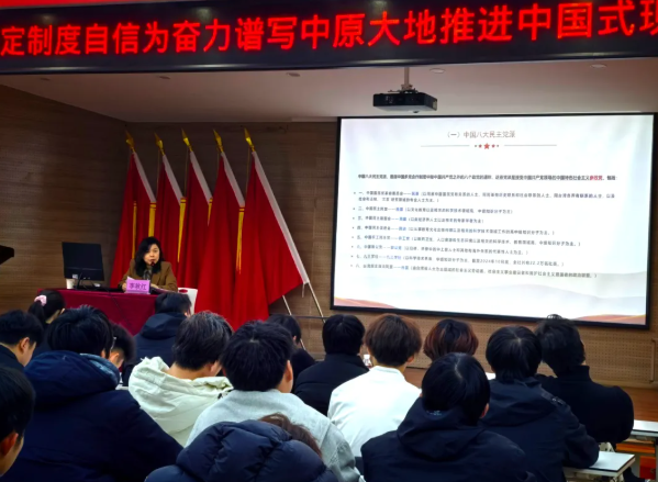 12月18日,市政协副主席、九三学社市委会主委李秋红赴郑州轨道工程职业学院讲授思政课。