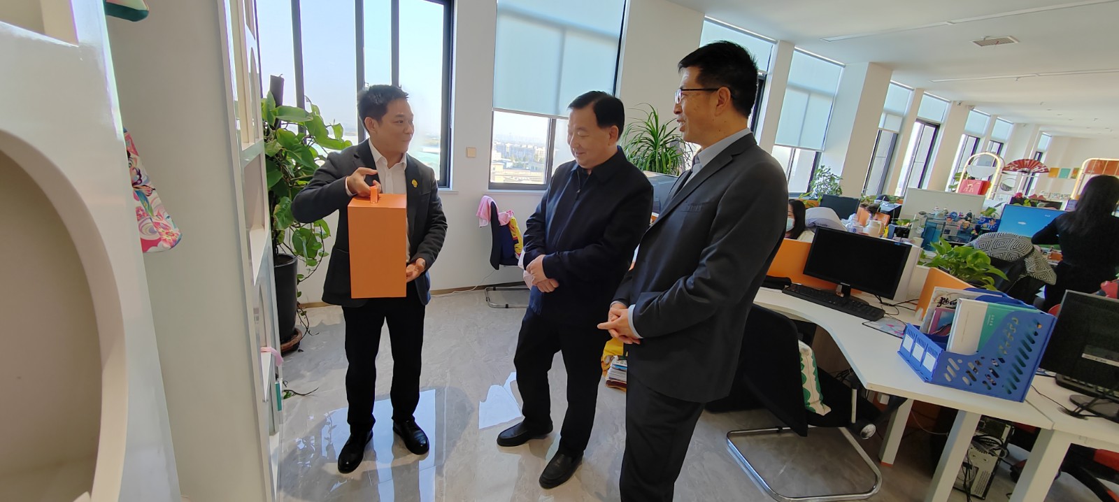 王万鹏一行实地察看了位于高新区莲花街联东U谷的河南华冠文化科技有限公司,现场听取了梁兴委员对公司研发的嘻多猴、唐宫夜宴等文创产品的讲解展示。随后又来到位于中原区的河南哈桑食品有限公司,在操作车间察看了公司的产品状况,并与熊进书委员面对面进行了交流。在两家企业,王万鹏深入了解了企业的经营和发展情况,特别是企业在经营中面临的困难、未来发展规划和对政协工作的意见建议。他表示切实帮助委员企业协调解决实际困难,并鼓励委员深入调研,撰写高质量提案,为中国式现代化建设郑州实践建真言、献良策。委员表示,今后将继续牢记委员职责,发挥建言资政优势,为我市经济社会高质量发展贡献力量。