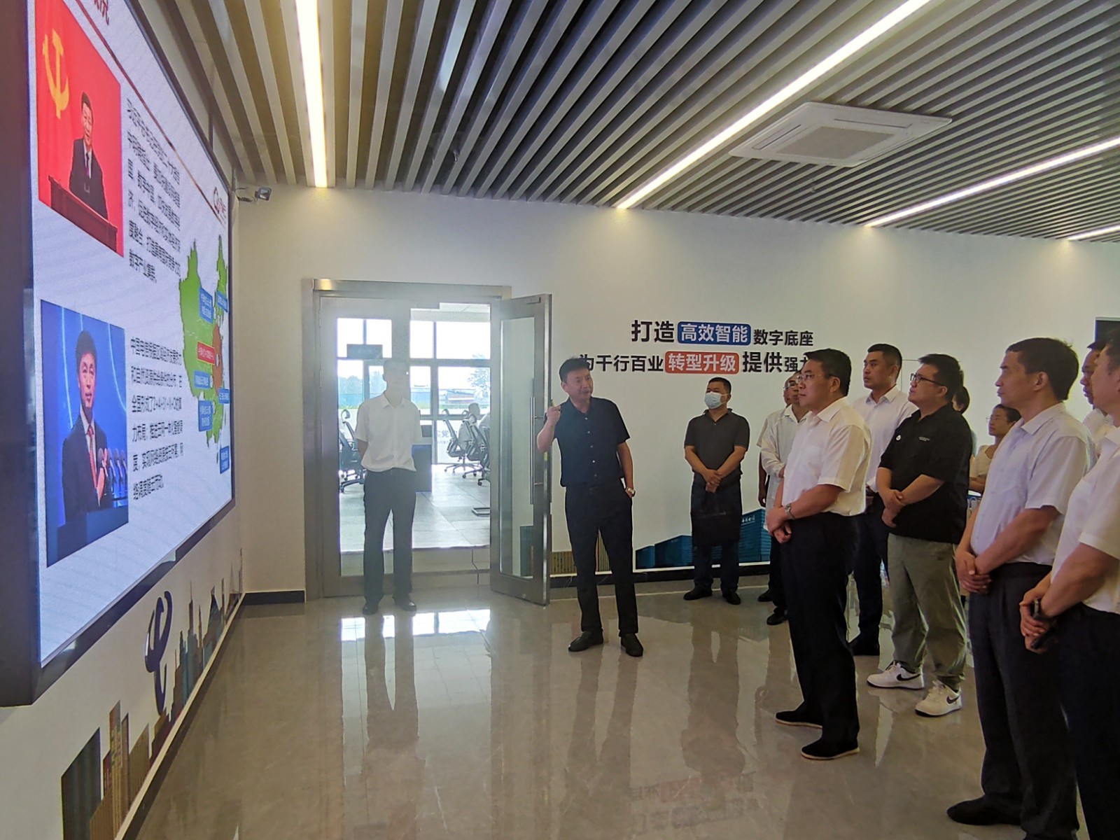范建勋一行首先来到超聚变数字技术有限公司,与企业相关负责人就企业经营和发展情况进行了交流,深入了解企业建设规划和存在问题;随后到中国电信中部数据中心和航空港区移动数据中心,参观机房及配套冷却系统、供电系统,了解了企业运营情况。